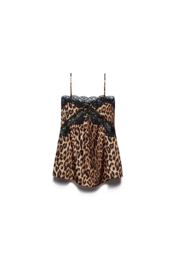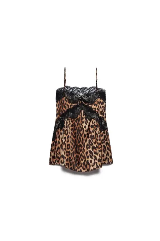 Irresistiblemente encantador, el top Leonie une dos tejidos rebeldes: su estampado animal salvaje se intercala con aplicaciones de encaje para una mezcla que es seductora y glamurosa a partes iguales. Un broche con el logotipo y tirantes ajustables completan el diseño.