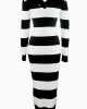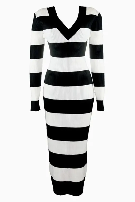 - Vestido de punto a rayas en negro y blanco