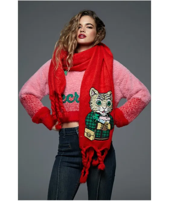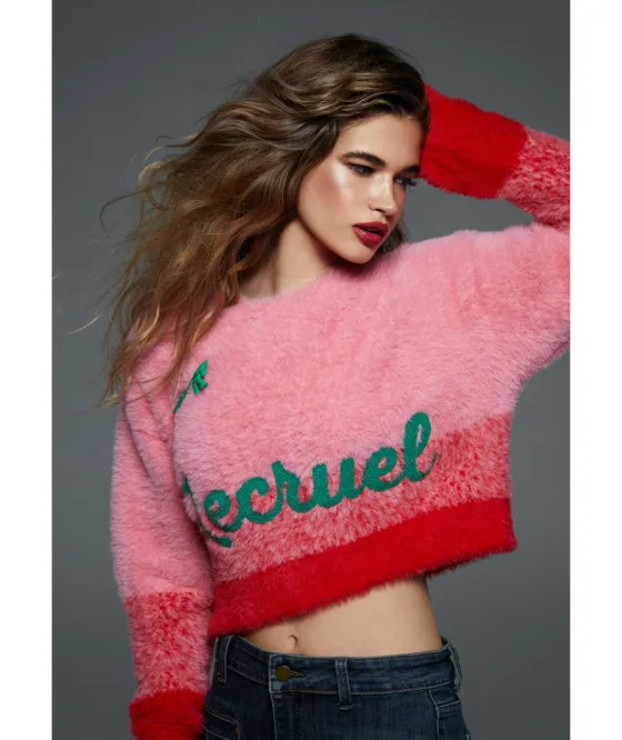 - Jersey de pelo bicolor, en rosa con rojo.