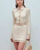 - Galoneras en el mismo tejido en los hombros con broche dorado.