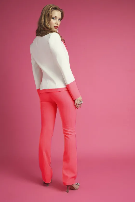 Pantal贸n en rosa flu贸r, tiro medio y recto. Con un patr贸n perfecto. Muy c贸modo.
