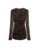 El minivestido Judy fusiona el poder visual del estampado animal con una silueta favorecedora que celebra el cuerpo de forma natural. El drapeado crea movimiento a lo largo del cuerpo, realzando las curvas para añadir dinamismo a la forma. El cuello redondo y las mangas largas realzan el look con una sencillez refinada.