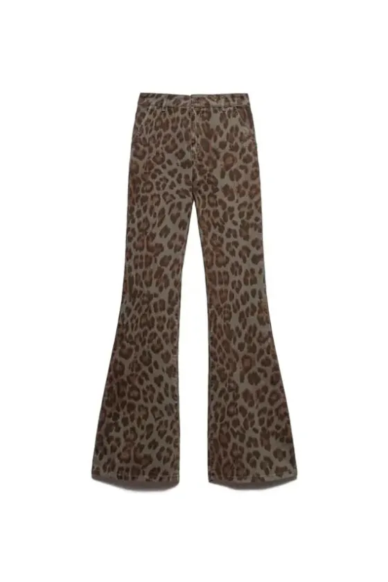 Los vaqueros Lizzy acampanados combinan vibraciones urbanas y un espíritu salvaje, añadiendo un toque atrevido a tus looks de día. Confeccionados en mezclilla de algodón con estampado animal en toda la prenda, presentan una pernera acampanada y un corte ajustado.