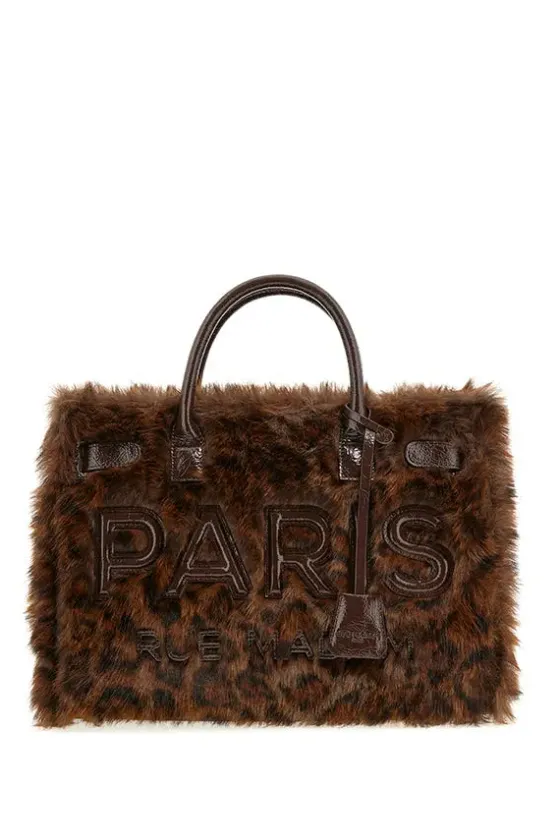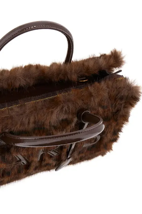 - Bolso Tote en ecopiel estampado en mancha animal print en marrones y negros.