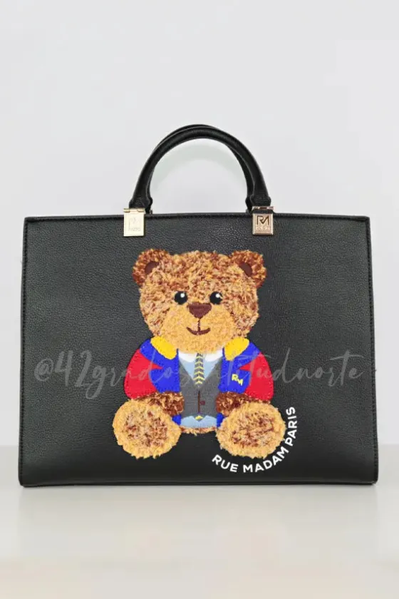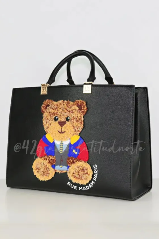- Bolso tote en ecopiel martillada con el icónico oso Marvin y el logotipo estampado.