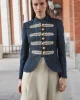 Esta blazer militar presenta un corte entallado y estructurado que estiliza la figura, resaltando la cintura con precisi贸n y elegancia.