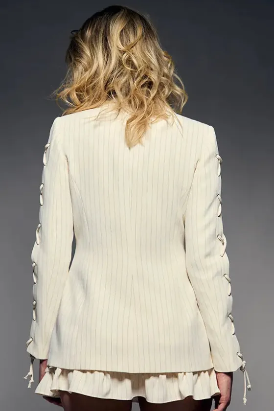 - Detalle en la mangas con olladosy cordones.
