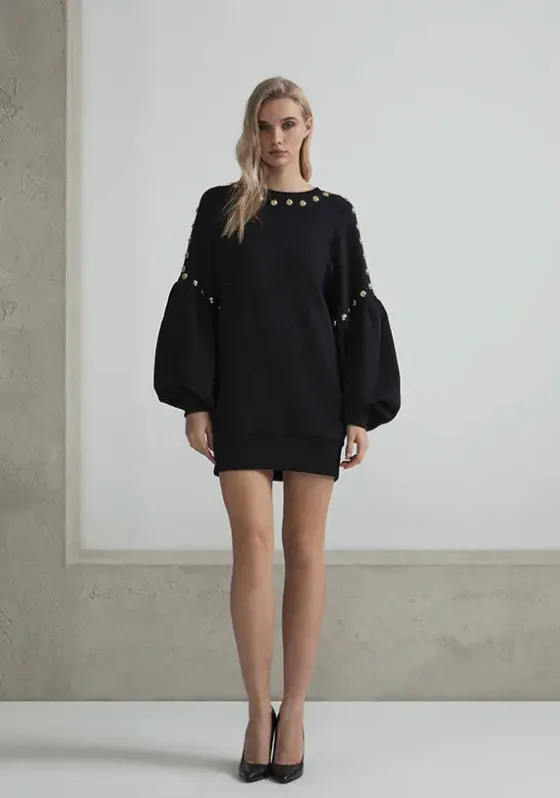 - Vestido/sudadera negro en una felpa de algod贸n maravillosa.