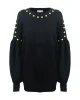 - Detalle de tachuelas doradas en el delantero, bordeando el cuello, hombros y el corte en la manga.