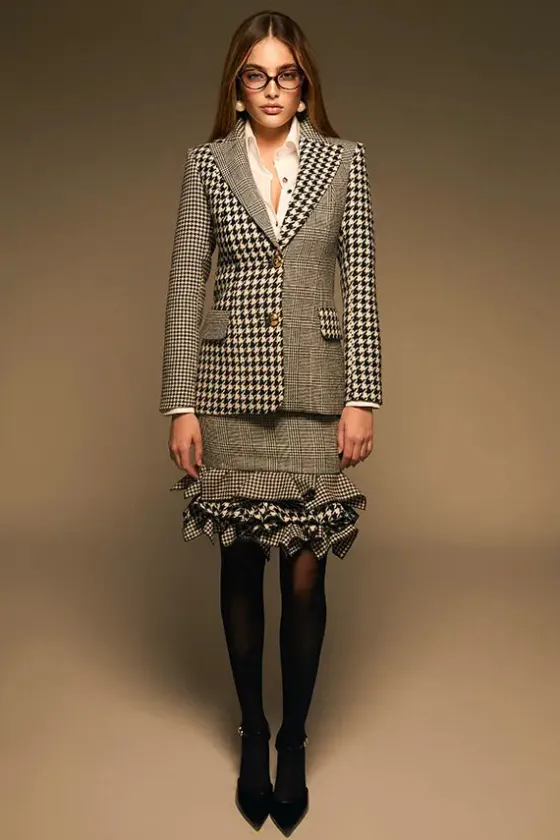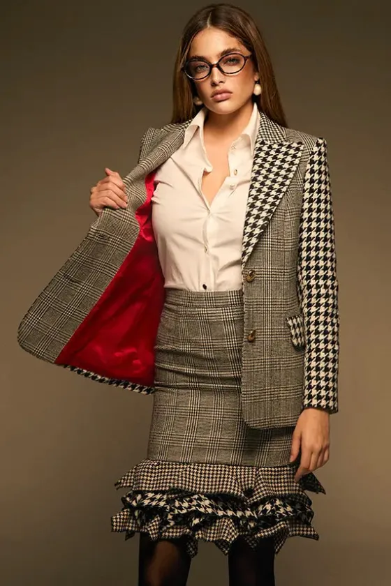 - Blazer en un cuadro de pata de gallo en blanco y negro de la colecci贸n FW 25-26 de u Do It.