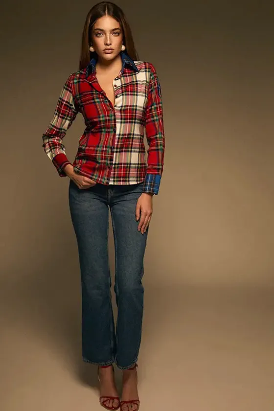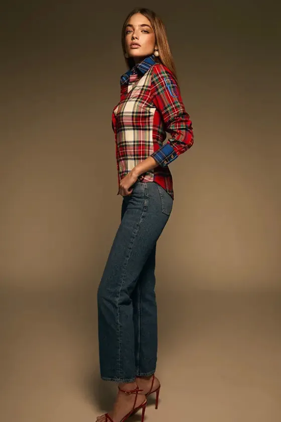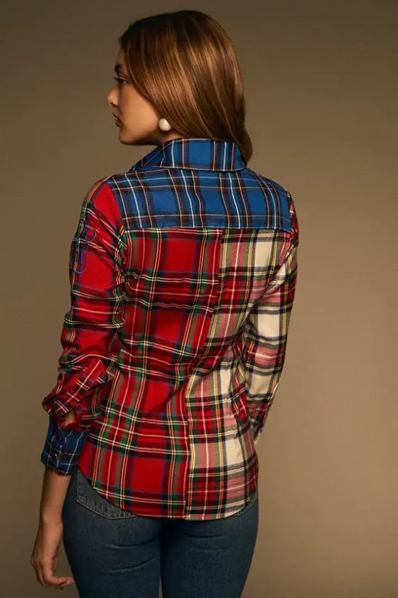 - Mezcla de tejidos en cuadro tartán en gamas de rojos, blanco, verdes, azules, amarillos…