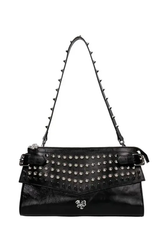 Atrevido pero con un equilibrio perfecto, el bolso de piel Amy está adornado con tachuelas metálicas en la solapa y la correa. El logotipo exclusivo de Aniye By completa el diseño, creando un accesorio que sin duda será el centro de atención.