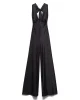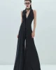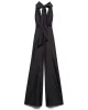 El mono Leila juega con proporciones atrevidas y detalles femeninos para aportar una elegancia exclusiva a las ocasiones de noche. Su silueta presenta un escote en pico pronunciado que se ata con un lazo oversize en la espalda, se ajusta a la cintura y fluye hasta una amplia pernera palazzo.