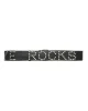 Cintur贸n negro en piel, con tachuelas en plata con la inscripci贸n 芦Aniye Rocks禄.