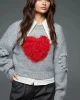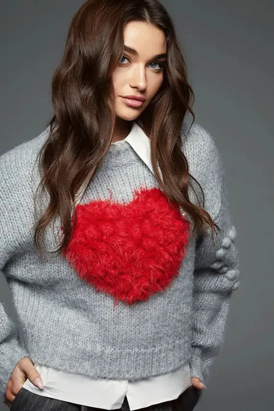- Coraz贸n en rojo en el delantero, en relieve y en tejido.