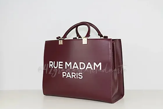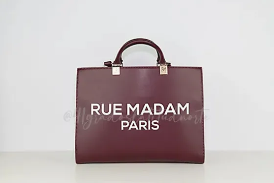 - Bolso tote en ecopiel lisa con logotipo grabado y estampado.