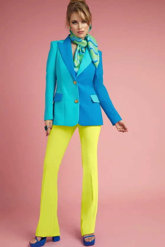 Pantalón en amarillo flúor, tiro medio alto, ajustado en pierna y con un efecto ligeramente acampanado. Cremallera invisible en un lateral.Consúltanos medidas para aconsejarte la talla.