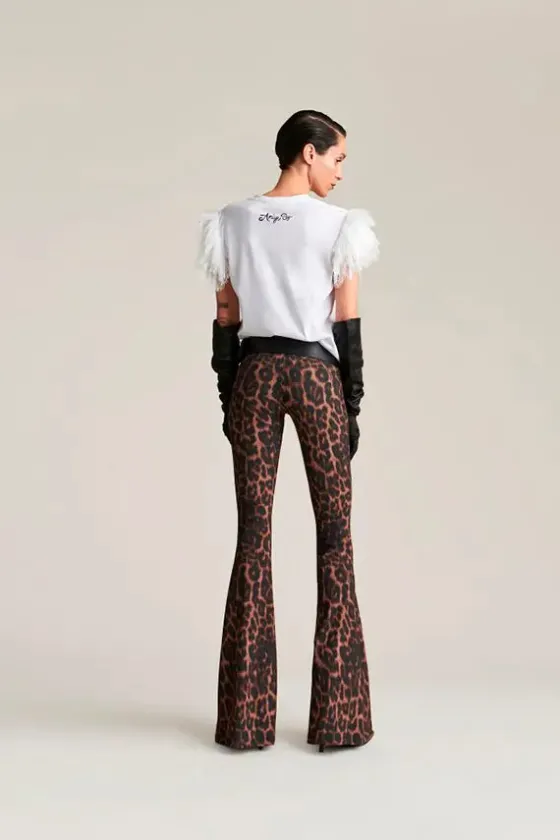 Los pantalones acampanados Nadine marcan la pauta con su corte ceñido al cuerpo y un drapeado estratégico en las caderas, diseñados para realzar las curvas. Disponibles en varios estampados llamativos en toda la prenda, añaden movimiento y una feminidad atrevida a cualquier atuendo.