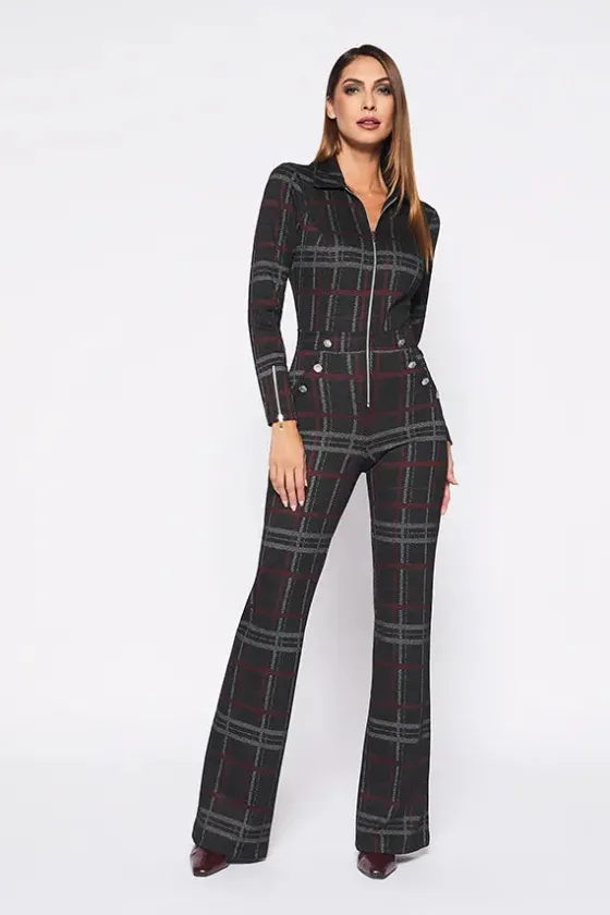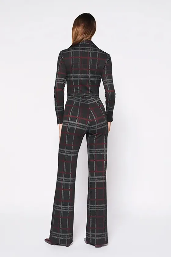 - Estampado en un cuadro gris y rojo.