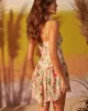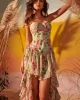 - Vestido de gasa con un precioso estampado floral en tonos verde y rosa