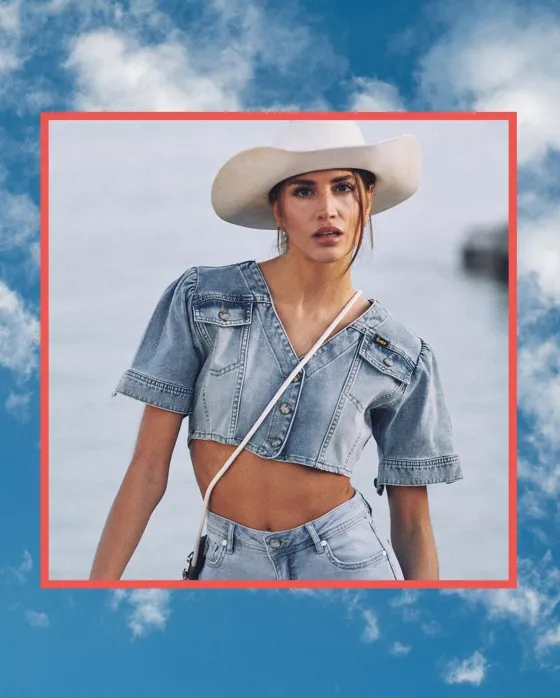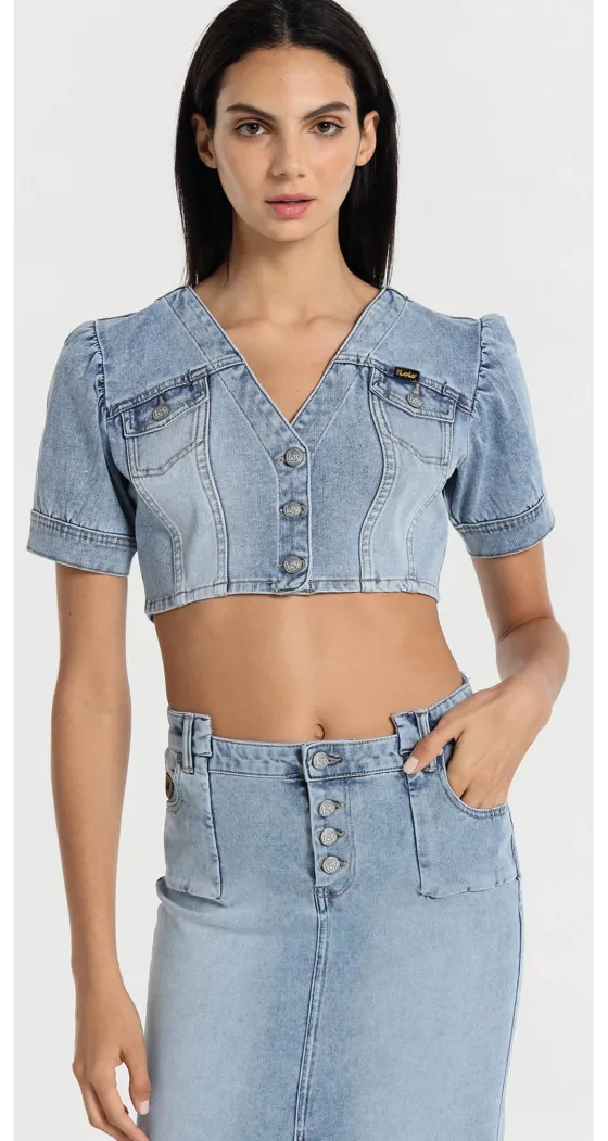 - Camisa vaquera crop top en azul claro.