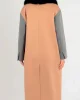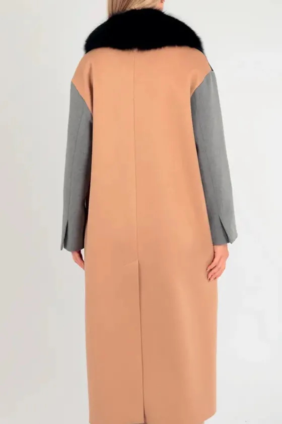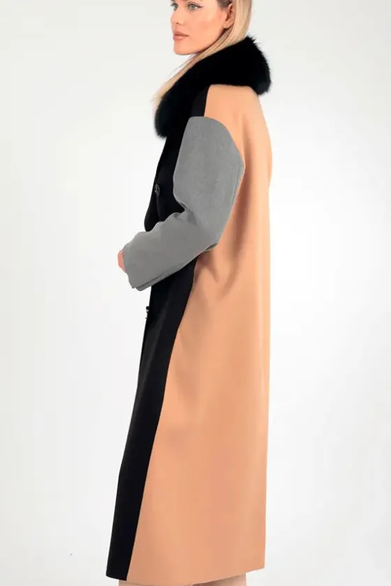 - Delantero en negro, espala en camel y mangas en gris.