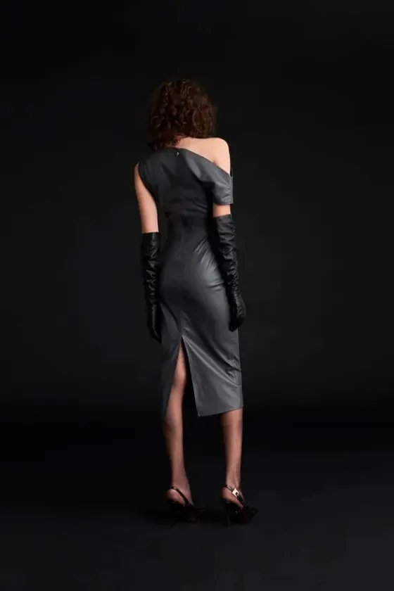 Carly es el vestido midi confeccionado en tejido con efecto piel que aporta a la sensualidad un toque gráfico moderno. El diseño de un solo hombro esculpe la silueta con líneas limpias y proporciones nítidas, mientras que el largo midi equilibra el look con un toque sofisticado.