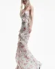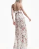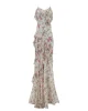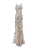 Vestido largo entallado en georgette de viscosa estampado.Modelo de tirantes finos y detalle de volante.