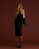 El vestido midi Sienna explora los contrastes entre estructura y seducción. El escote tipo barco traza una delicada curva que roza las clavículas, mientras que el tejido elástico sigue la silueta con una precisión elegante. La cremallera trasera, de corte limpio, realzada por un tirador de cremallera de la marca, añade un detalle gráfico con la personalidad de Aniye By.