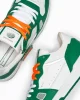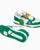 - Empeine de piel blanca con tacón a juego, perfiles verdes y detalles reflectantes