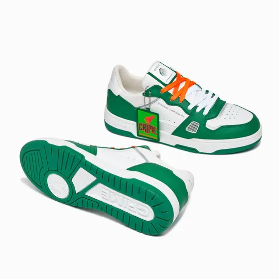- Foxing de goma blanca con logo Crime con suela verde, 2-3 cm de altura