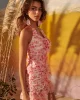 - Vestido de gasa con estampado de flores en tonos rosas