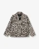 - Cazadora en animal print. Con mancha marrón y beige sobre el fondo grisáceo.