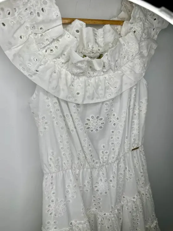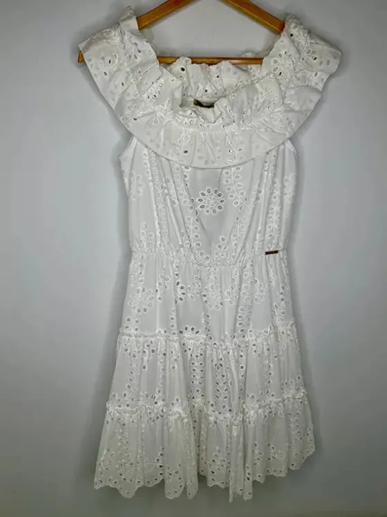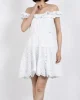 - Vestido blanco en un tejido de algodón troquelado.