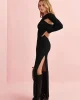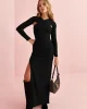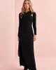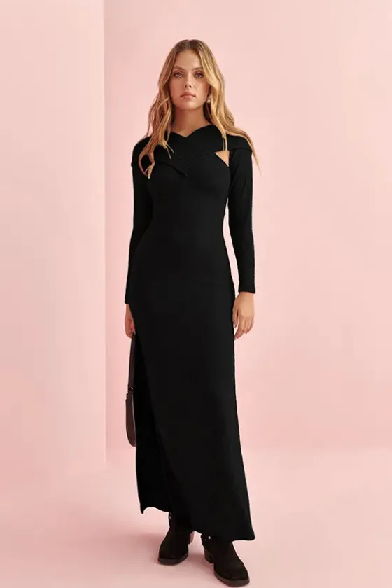 - Vestido de punto largo con un diseño asimétrico y mangas largas, perfecto para eventos elegantes o salidas nocturnas.