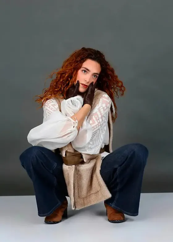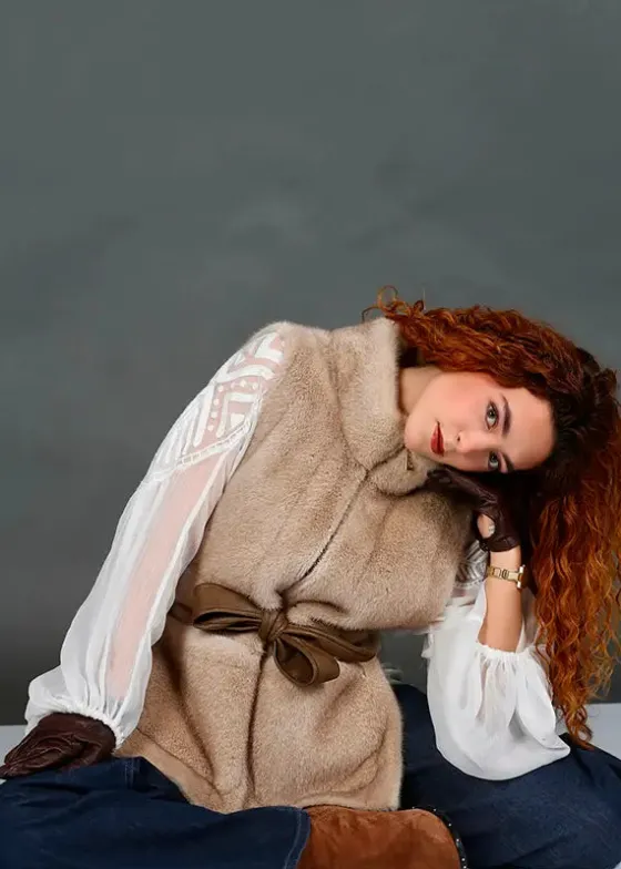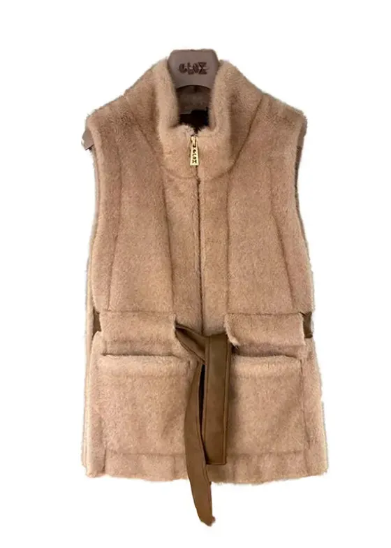 - Chaleco beige en pelo sint茅tico.