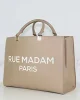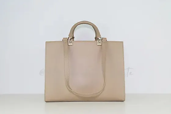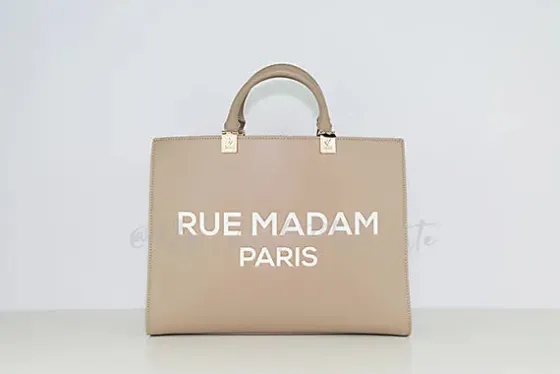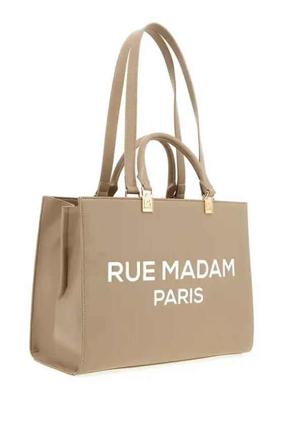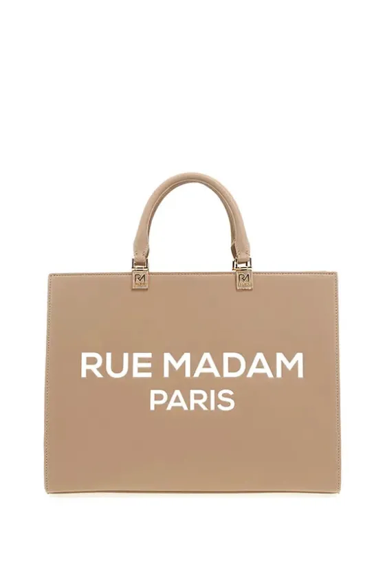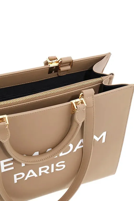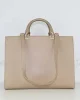 - Bolso tote en ecopiel lisa con logotipo grabado y estampado.