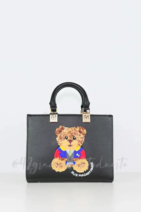 - Bolso mini tote en ecopiel martillada con el icónico oso Marvin y el logotipo estampado.