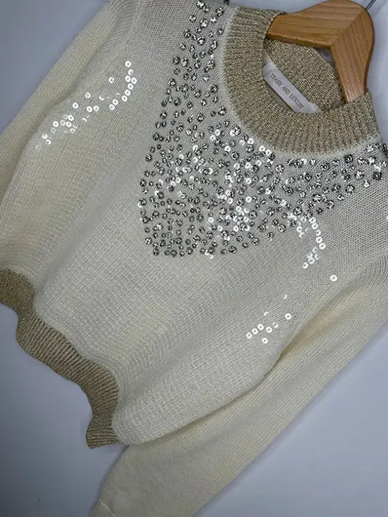 - Lentejuela transparente en todo el delantero.