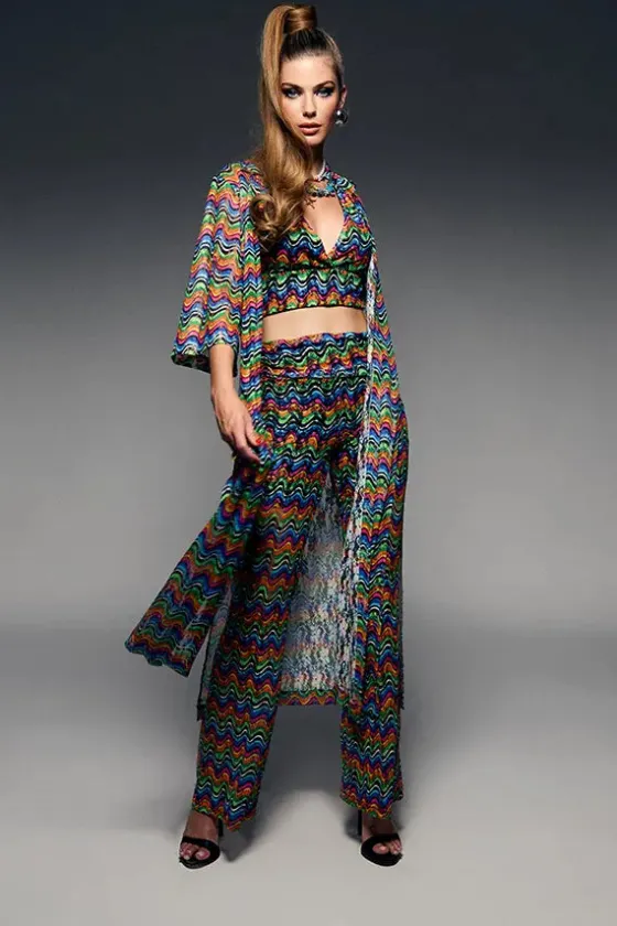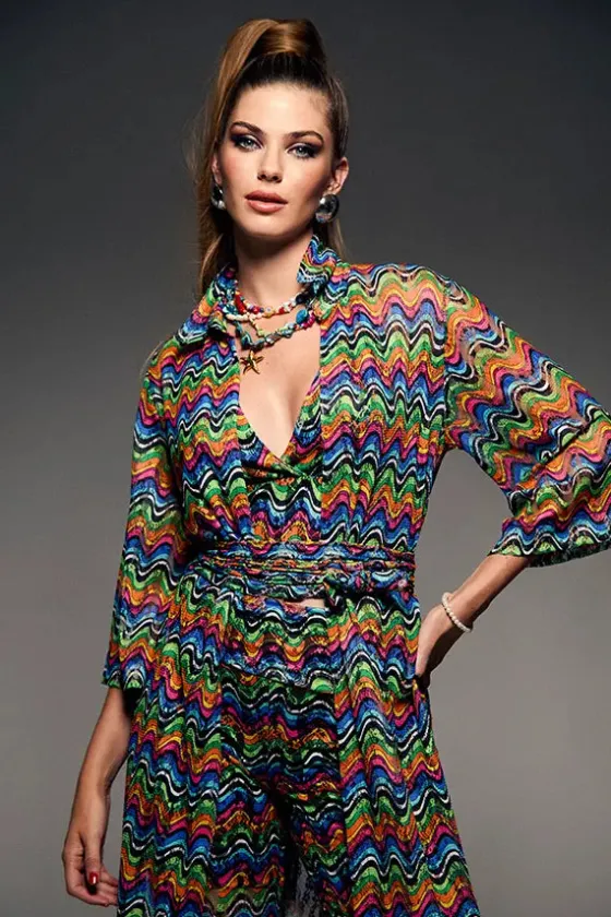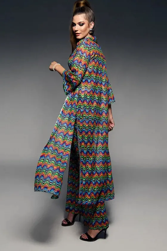 - Kimono en un estampado multicolor muy favorecedor.