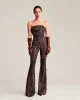 Líneas limpias. Espíritu indómito. El mono Jodie presenta un estampado animal en toda la prenda que expresa el lado salvaje del glamour, mientras que el corpiño recto esculpe el busto y deja al descubierto los hombros. La cremallera en la parte trasera, con un tirador de cremallera con la marca propia, remata la prenda con un diseño Aniye By touch.