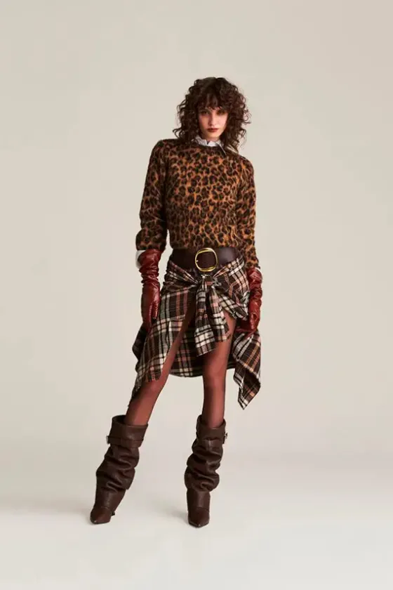El Keira es el jersey que ofrece una versión moderna del estampado de leopardo con un toque acogedor. El corte limpio y el ribete acanalado permiten que la textura brille, la verdadera estrella de este atrevido look. Combínala con vaqueros, una minifalda o debajo de un blazer. Sigue tus instintos.