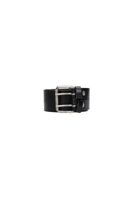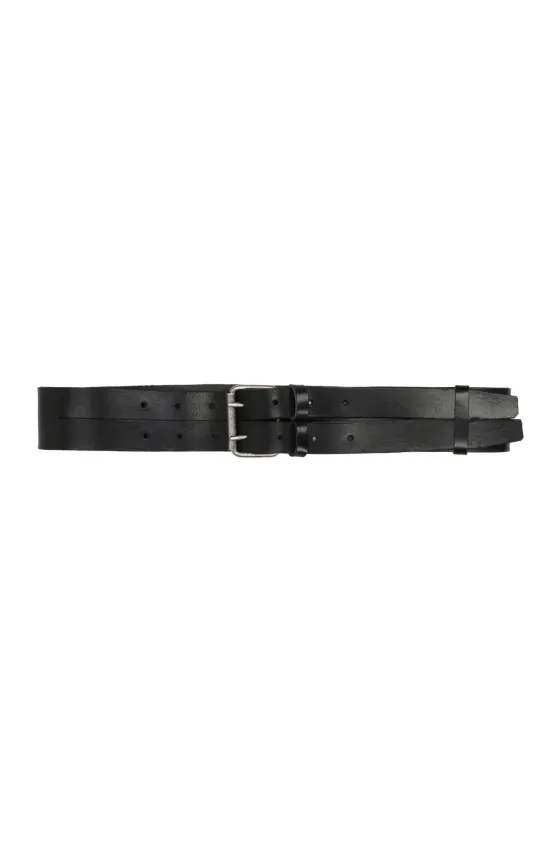 Cintur贸n negro en piel, con doble hebilla.