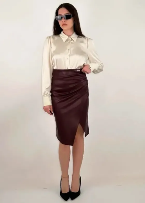 - Falda midi Burgundy (color vino) en ecopiel.
