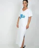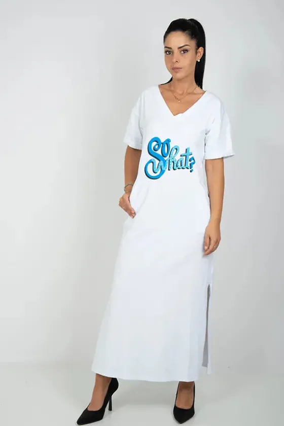 - Serigrafia en azul con el texto «So what» y decorada con pedrería.