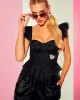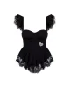 - 2 volantes en el bajo, en el mismo tejido y otro en puntilla al tono.