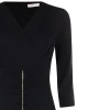 - Manga al codo y escote cruzado en V.