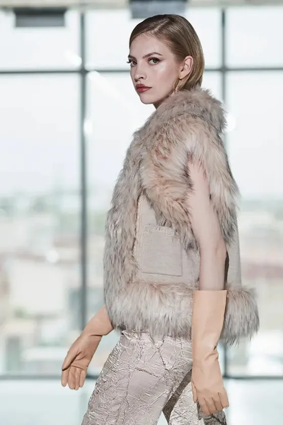- Este chaleco pelo Fleur no es solo una prenda; es una declaración de estilo personal que confiere una presencia inconfundible y una confianza que irradia desde la singularidad de su confección.