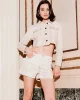 - Cazadora en denim beige con un acabado en dorado.